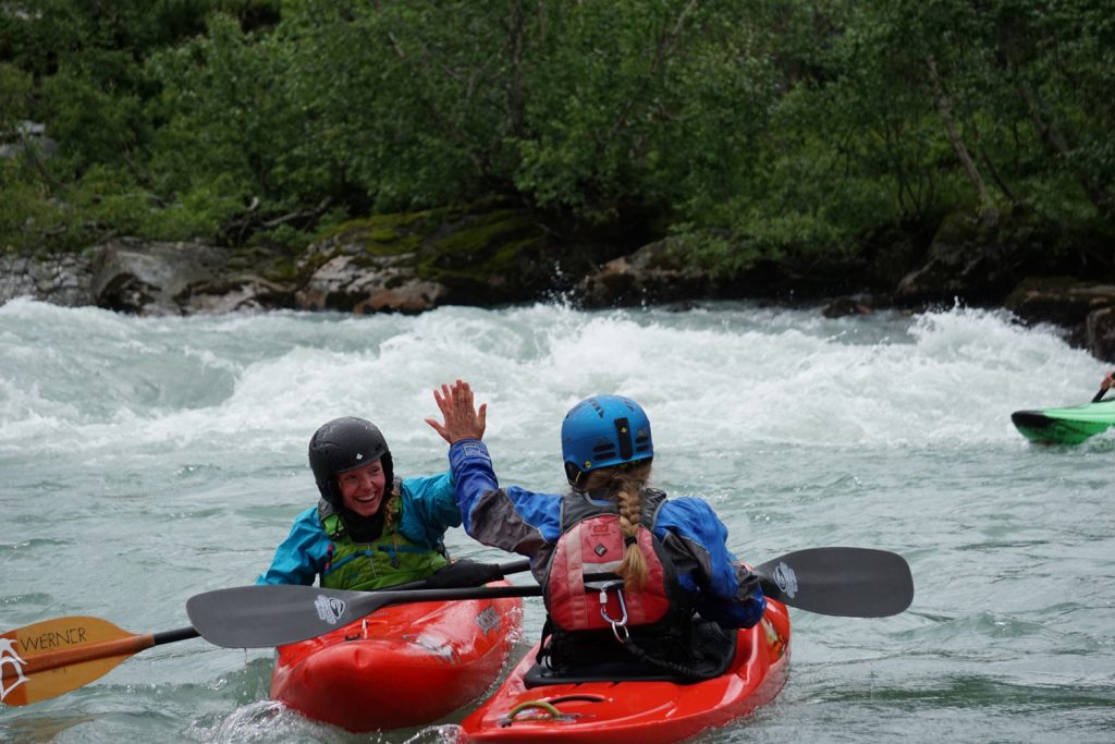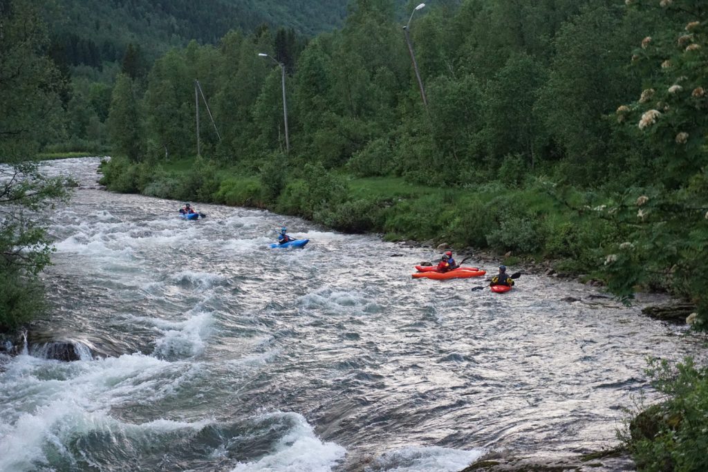 Am Samstagmittag war dann Ladyspaddeln auf der „Strandaselvi“ angesagt, mit Patrick und Lars als Safetyboys. Weil der Abschnitt so flott ging und echt viel Spaß gemacht hat, sind 2 von 4 Ladys und Lars das Stück nochmal gefahren. Im Anschluss ging es dann für die Männer zur „Myrkdalselvi“. Zum Glück ist es ja in Norwegen ewig lang hell (oder aber es wird einfach nicht dunkel), sodass es vollkommen okay ist, wenn man erst um 21:30 Uhr vom Bach runter ist.