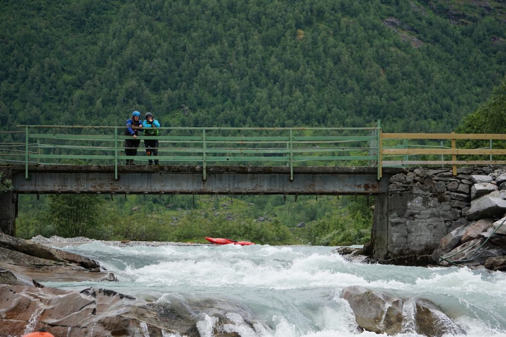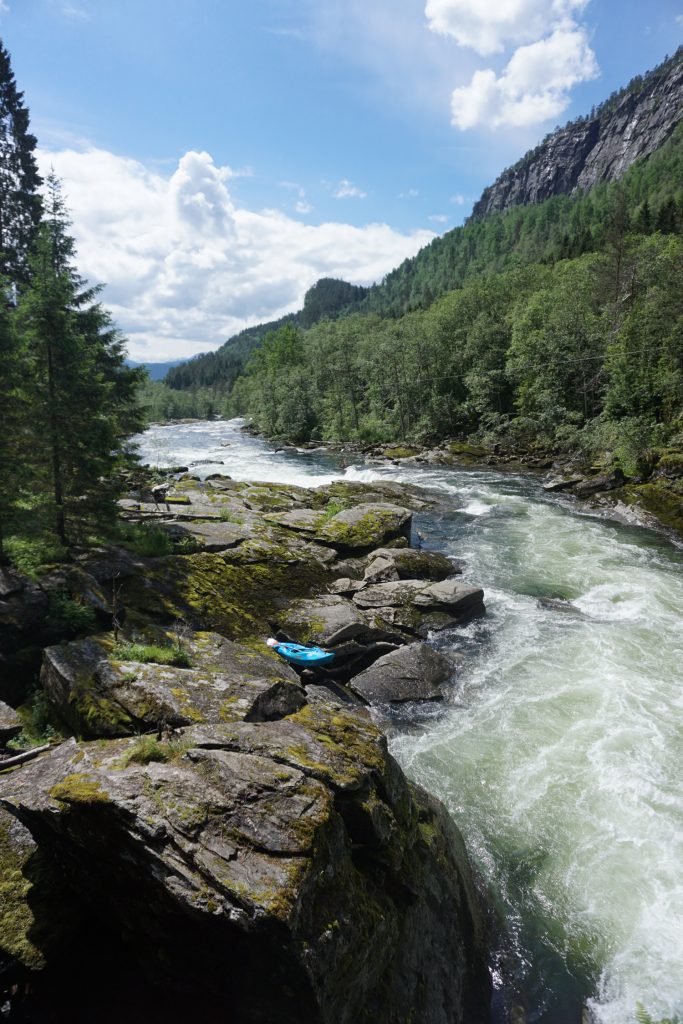Sonntag ist die Gruppe den oberen „Sogndalselva“ gepaddelt. Montag wurde dann die obere und untere „Sogndalselva“ gepaddelt, bevor es dann am Nachmittag zum Sogndal Terminal ging, um noch einen Freund einzusammeln. Im Anschluss sind wir dann nach Vårstølen zur „Sumelvi“ gefahren. Da dies wieder ein Ladysrun werden sollte, keiner von uns den Fluss kannte und er auch nicht im Flussführer deutlich beschrieben war, sind wir Damen scouten gefahren und hatten beschlossen: Jo, das machen wa! So ging es dann am Dienstag Vormittag auf die „Sumelvi“ und danach sind wir nach Oppenland zur „Sjoa“ gefahren.